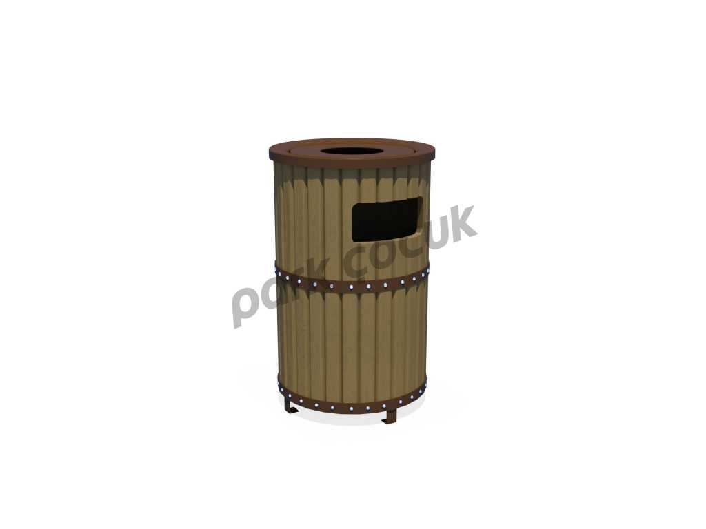 ŞIK AHŞAP GÖVDELİ ÇÖP KUTUSU - EMPRENYELİ AHŞAPLARIN SİLME ÇEMBERLERE VİDALANMASIYLA ŞIK VE KULLANIŞLI PARK BAHÇE TİPİ ÇÖP KUTUSU. KAHVERENGİ VE YEŞİL EMPRENYELİ RENK SEÇENEĞİ. GALVANİZ İÇ KOVALI.